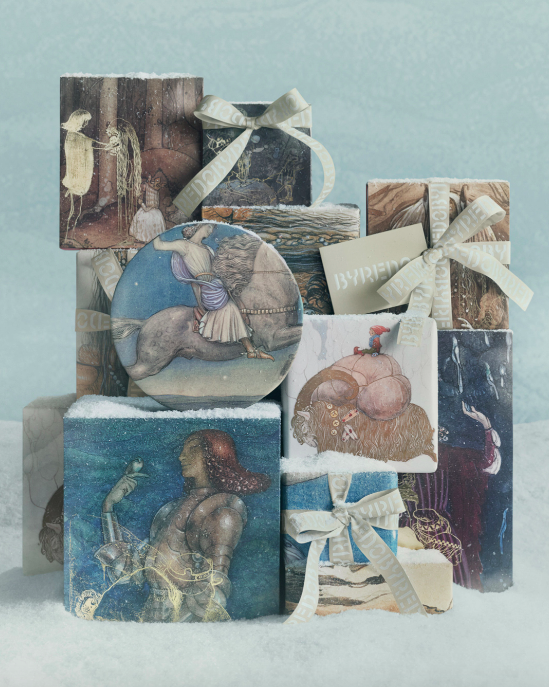 Находясь между мечтой и реальностью, каждый предмет из сезонной коллекции подарков поставляется в упаковке лимитированного выпуска с графикой шведского иллюстратора Джона Бауэра.