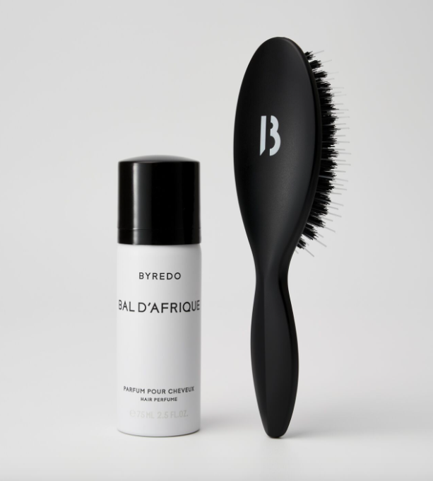 В набор входит парфюмерная вода для волос и расческа, помещённая в хлопковый брендированный мешочек.